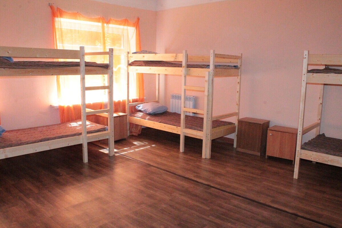 В корпусе - 4 комнаты по 10 человек каждая. Душ, умывальник, туалет и стиральная машинка находятся на этаже в корпусе.